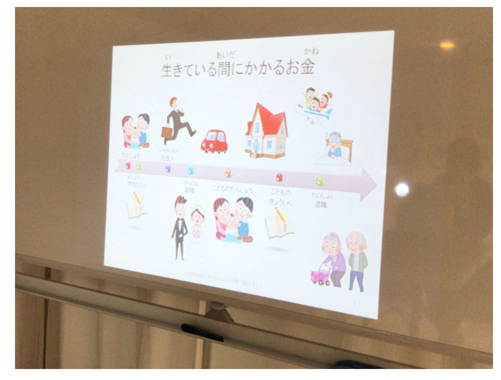 講師の平野さんがはプロのFP(ファイナンシャルプランナー)です。ライフプランを考えるうえで、どううときに大きなお金が必要になるのかからお勉強です。
